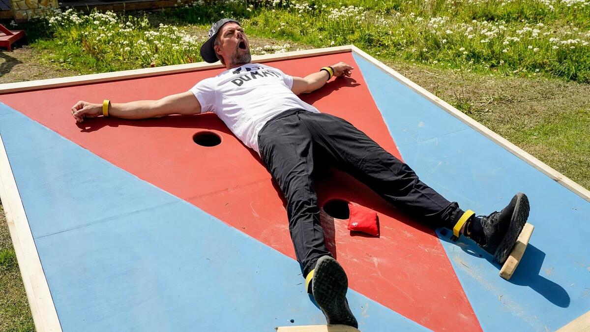 Alliances begin to form as find the flag and human cornhole challenges test the strength of the six teams of friends.