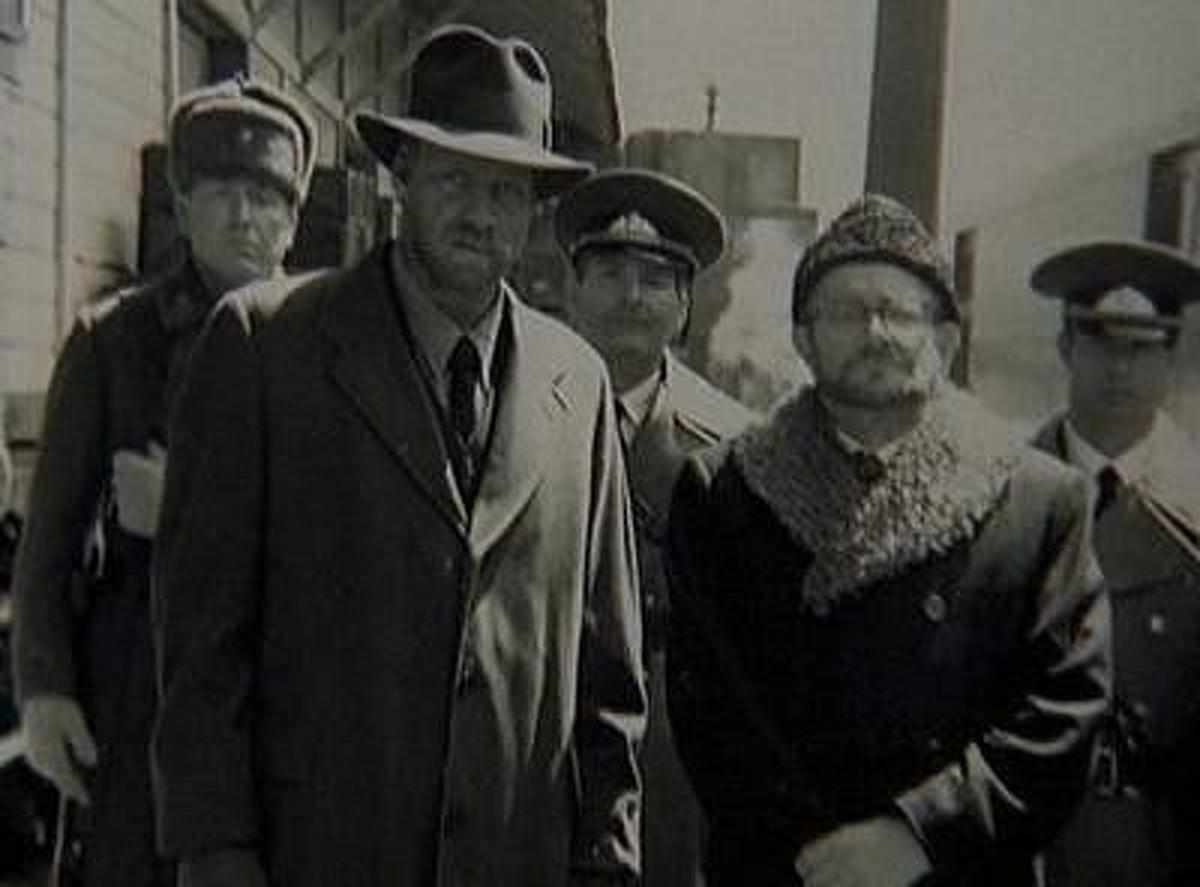 (The time is 1980, several Russian soldiers are guarding a prisoner who is Harmon Rabb, Sr. at a train station. The KGB take a photo of the persons gathered there - a photo which has made its way to Harmon Rabb, Jr. in the present time.)