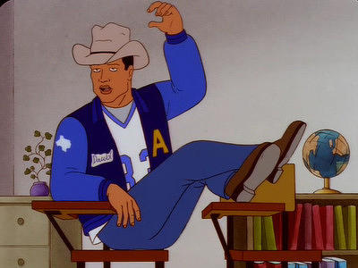King of the Hill is another animation hit from Beavis and Butthead creator Mike Judge, who also voices the starring character Hank Hill, a propane gas salesman in the fictional town Arlen, Texas. Hank is often besieged by the idiosyncrasies of society, but he finds (some) serenity in his home-life with his wife, substitute Spanish teacher Peggy, his awkward son Bobby and his live-in niece-in-law Luanne Platter. Adding flavor to the ordinary dish the series serves are Hank's friends, divorcee military barber Bill Dauterive, paranoid Dale Gribble (with an obsession with Government conspiracy theories) and gibberish spouting Boomhauer.