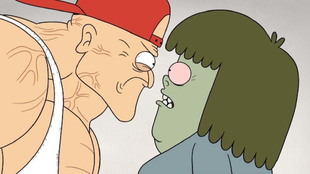 Two groundskeepers, Mordecai (a six-foot-tall blue jay) and Rigby (a hyperactive raccoon) are best friends who spend their days trying to entertain themselves by any means necessary, much to the displeasure of Benson (their boss, who is a gumball machine) and to the delight of Pops (an older, lollipop-headed gentleman).