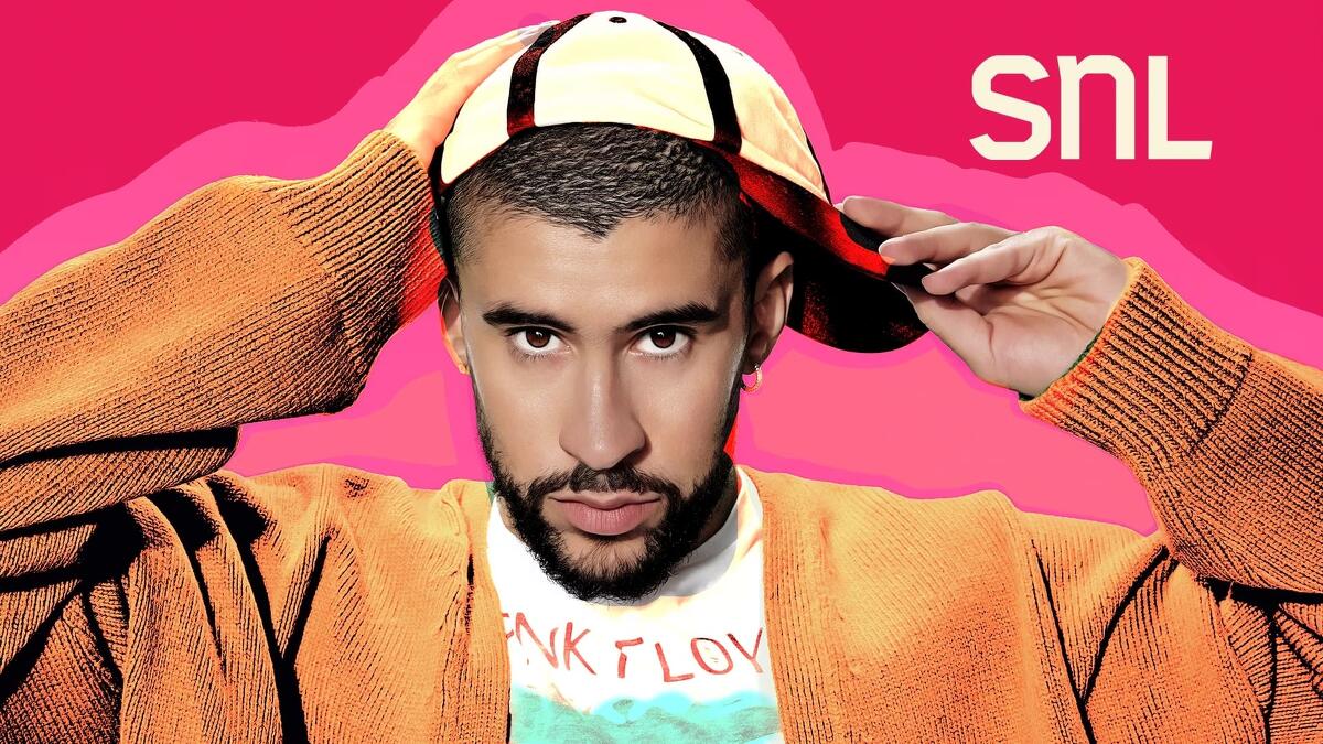 Bad Bunny hosts and performs on Saturday Night Live on October 21, 2023.