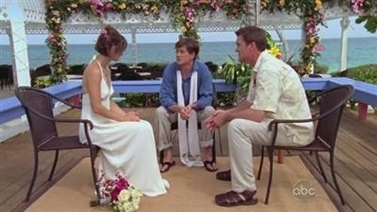 The tropical seaside wedding goes ahead as the Janitor and Lady tie the knot, which makes the other couples think about their relationships as well.