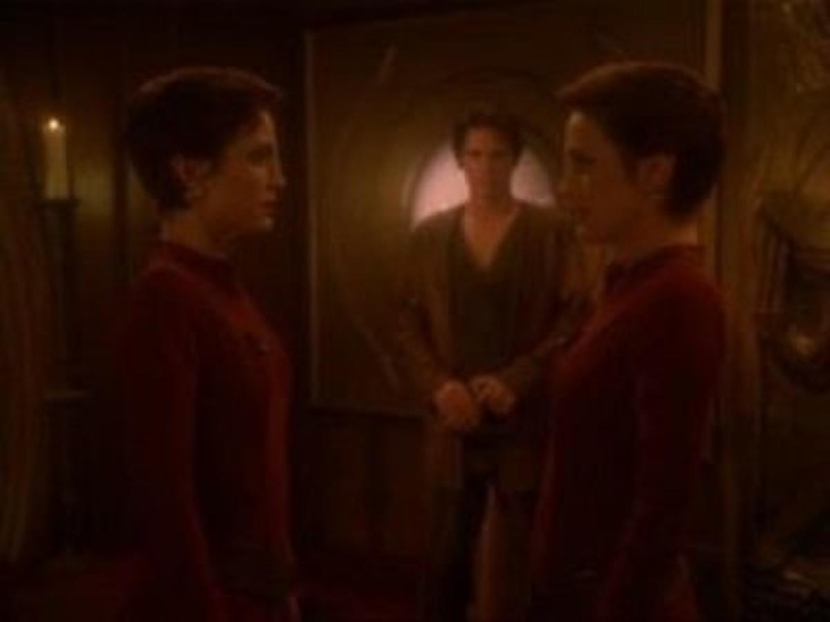 Dax tries to set the Major up for a dinner date, but Kira is not interested in bringing anyone. Even the company of Odo would, at present, not be realistic. The conversation is put aside when a man beams into Ops from an unknown location. When he reveals himself to Kira, the Major recognizes him as Bareil from the alternate universe.