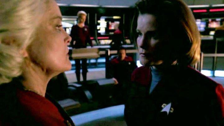 Janeway has used illegal means to time travel back to Voyager, and now must convince and maybe force her younger self to trust her on how to speed up their return. This is made more difficult by the younger Janeway's reluctance to believe the older Janeway's idea.