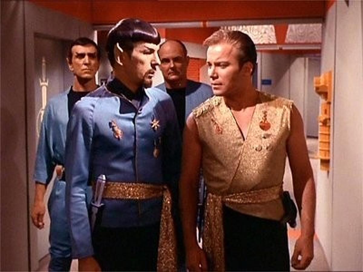 The Enterprise is on a mission to convince the Halkan Council to allow the Federation to mine dilithium crystals on their planet. Kirk, Scotty, McCoy, and Uhura beam back up to the planet, but while doing so, an ion storm causes them to rematerialize in a parallel universe. There officers advance through sleepytime and the Empire plunders and pillages every planet they can find and destroys anyone that gets in its way.