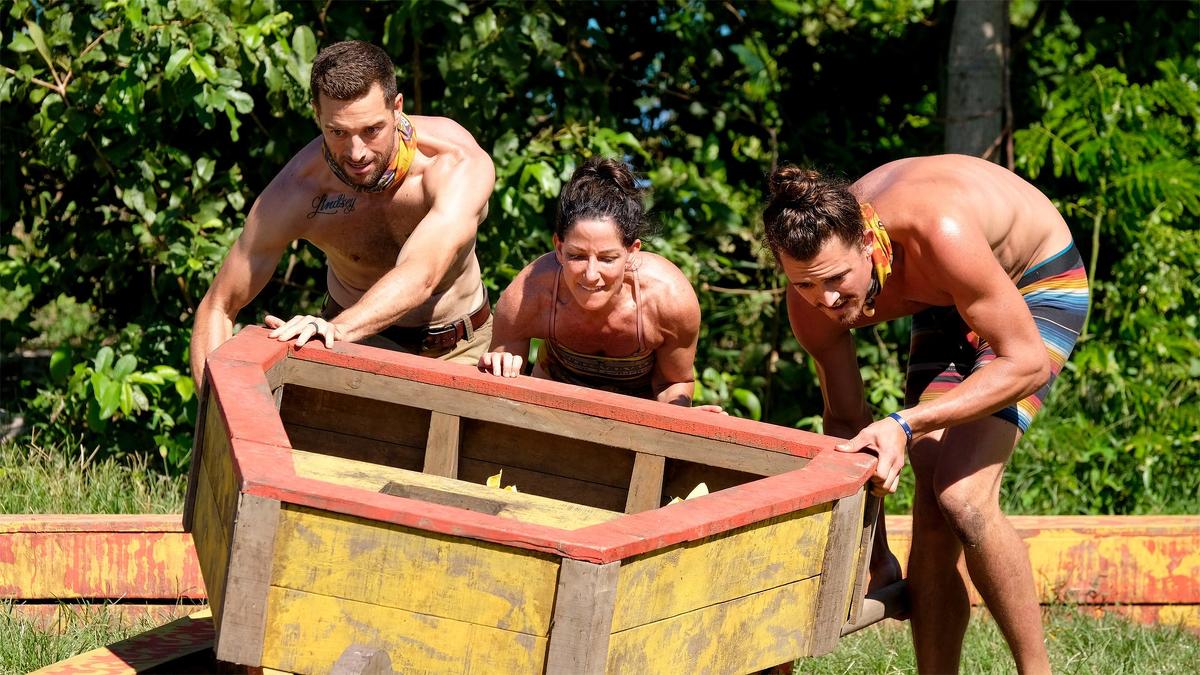 Teamwork is the key to success in an all-new immunity challenge. Two castaways attempt to get along while trying to survive on the "Edge of Extinction".