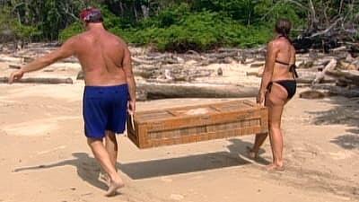 The reward challenge consists of which tribe can make the best shelter using various tools. Rupert and Jerri get into an argument about how the shelter should be made.