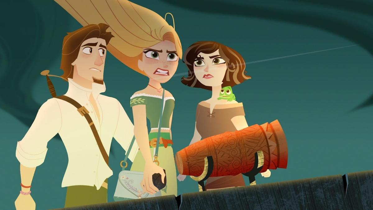 Six months after escaping Mother Gothel and reuniting with her birth parents, King Frederic and Queen Arianna of Corona, Princess Rapunzel is unable to properly adjust due to her father's constant protection. When she and her handmaiden Cassandra sneak out of the castle, they come upon some magical black rock spikes that magically restores Rapunzel's long blonde hair as they, Eugene Fitzherbert, Pascal the chameleon, Maximus the horse and young alchemist Varian uncover the mystery of her hair's return and its connection to the black rocks growing around Corona. Eventually, Rapunzel learns that Sundrop Flower's power resides in her with the black rocks directing her to the Dark Kingdom.