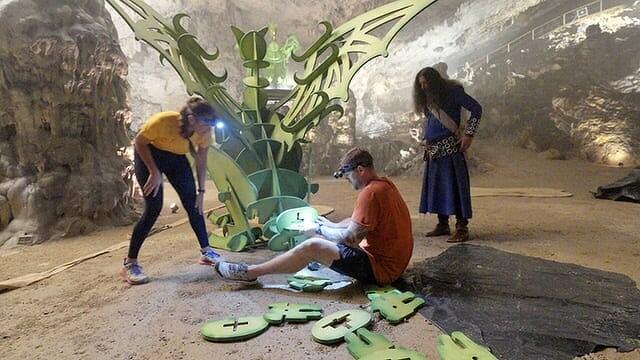 Teams continue racing in Slovenia, carefully traveling on foot carrying wooden pieces on their back, descending deep into a cave to assemble a giant dragon, and scraping off mussels and barnacles in the waters.