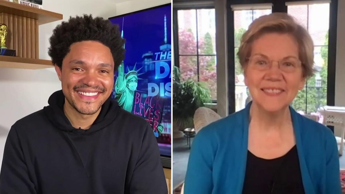 Trevor serves up some uplifting news for the pandemic era, The Daily Show explores the revolting life story of Senator Ted Cruz, and Senator Elizabeth Warren discusses her book "Persist".