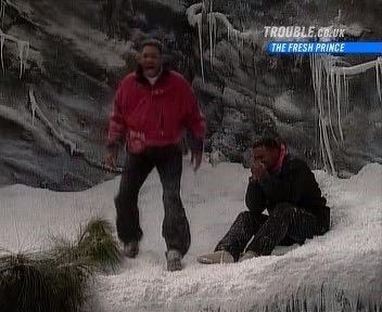 Snow way to treat a lady. Carlton gives Lisa the cold shoulder when she shows up at a guys-only ski trip.