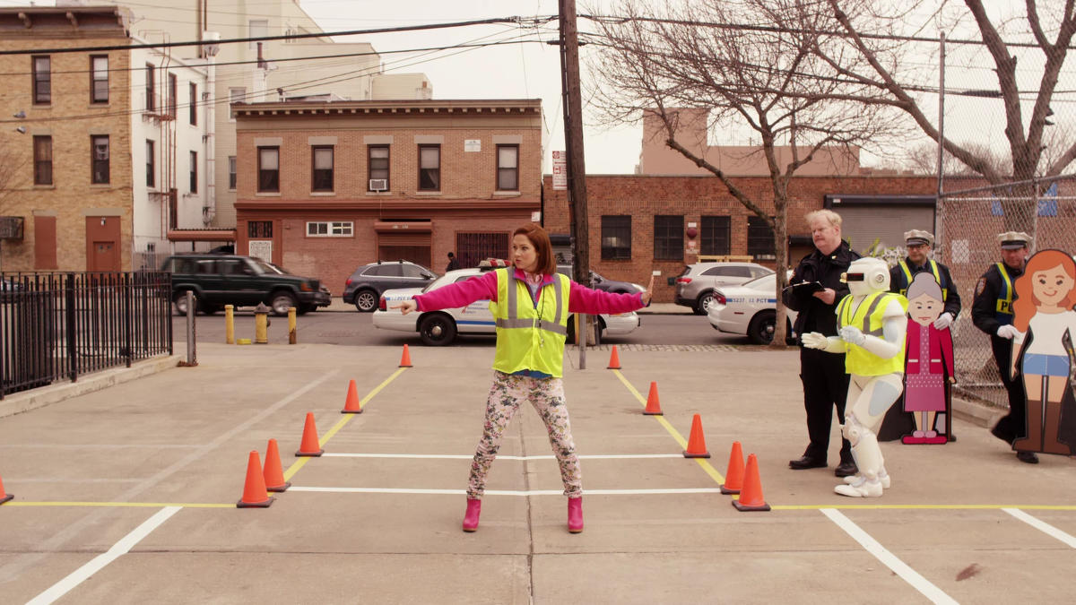 Kimmy decides to become a crossing guard. Buoyed by the success of "Boobs in California", Titus tries to win back Mikey with help from Jacqueline.